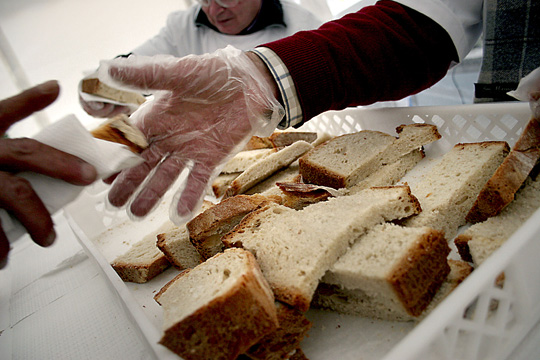 Na minha opinião bastava cortar a entrada ás pessoas que por lá passeavam em compras de natal não necessitadas, e transformar a fatiazinha de pão num “pão aberto” aos realmente desfavorecidos. Isto evitava as discussões que vi , por causa de uma fatiazinha de pão!!